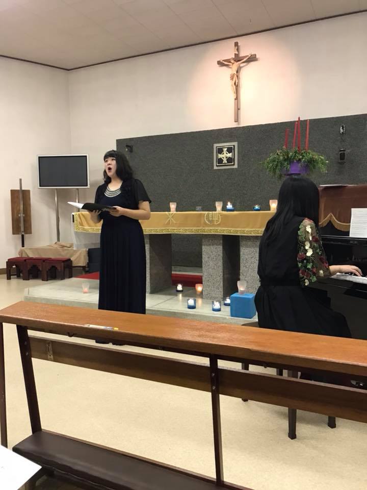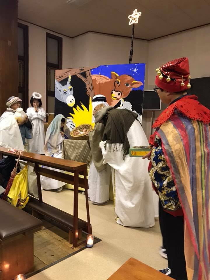 2017年12月9日 クリスマスの夕べ 今晩はクリスマスの夕べが開催されました。 一部は『三人の博士と贈り物』という聖劇が信徒によって演じられました。 二部はミニコンサートメゾソプラノの伊藤瑠糸さんとピアノの戸崎水晶さんをお迎えして、 ミニコンサートが開かれました。 今年で24回目を迎える「クリスマスの夕べ」ですが、豊かな恵みを受けて素晴らしい時間となりました。